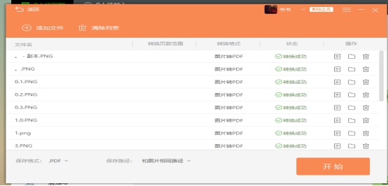 四、点击“开始”即可将选择的图片转换为PDF文件,转换的图片会全部放在一个文件夹中,文件夹与原文件放置在一起;